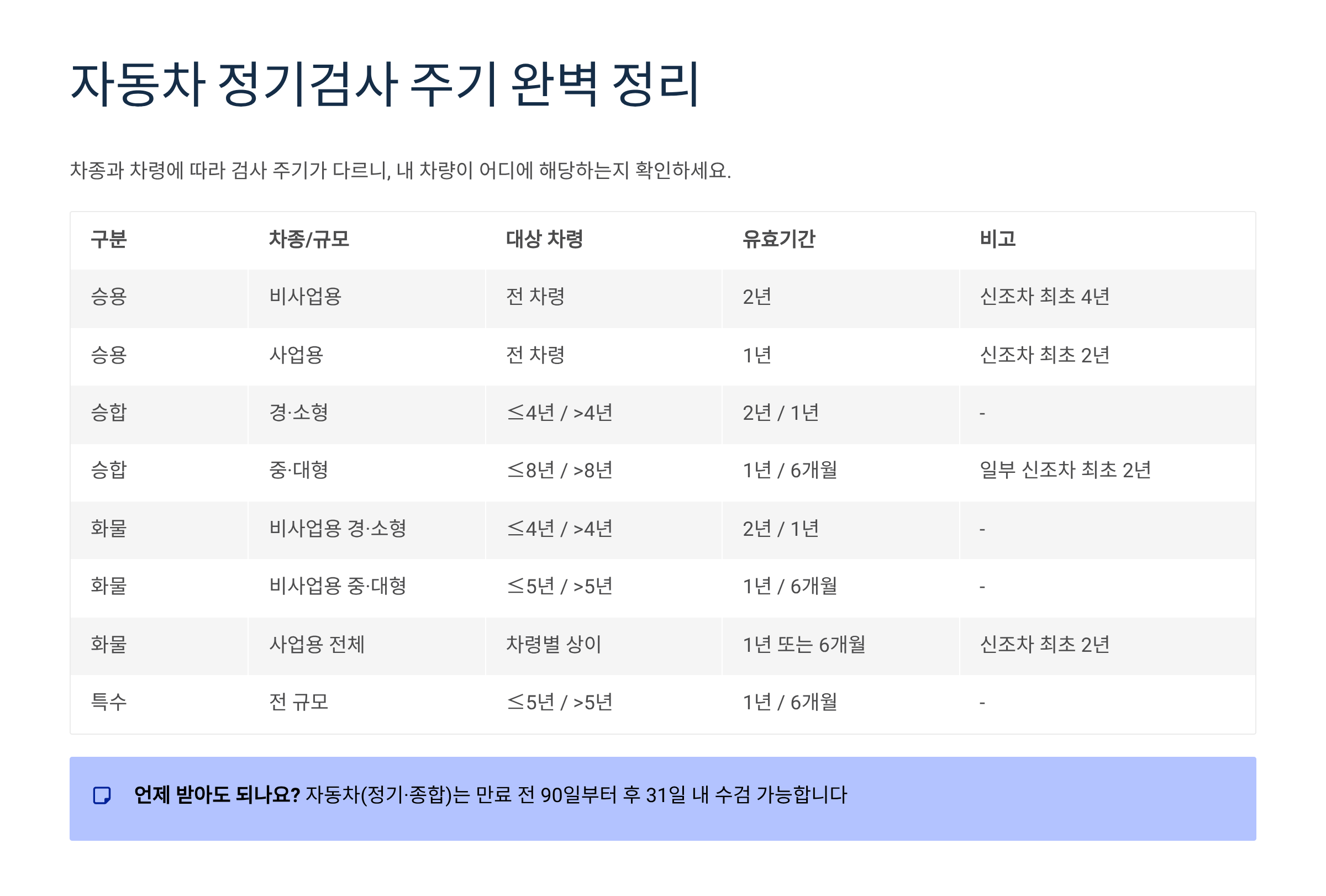 2) 자동차 정기검사 ‘주기’ 표(요약)